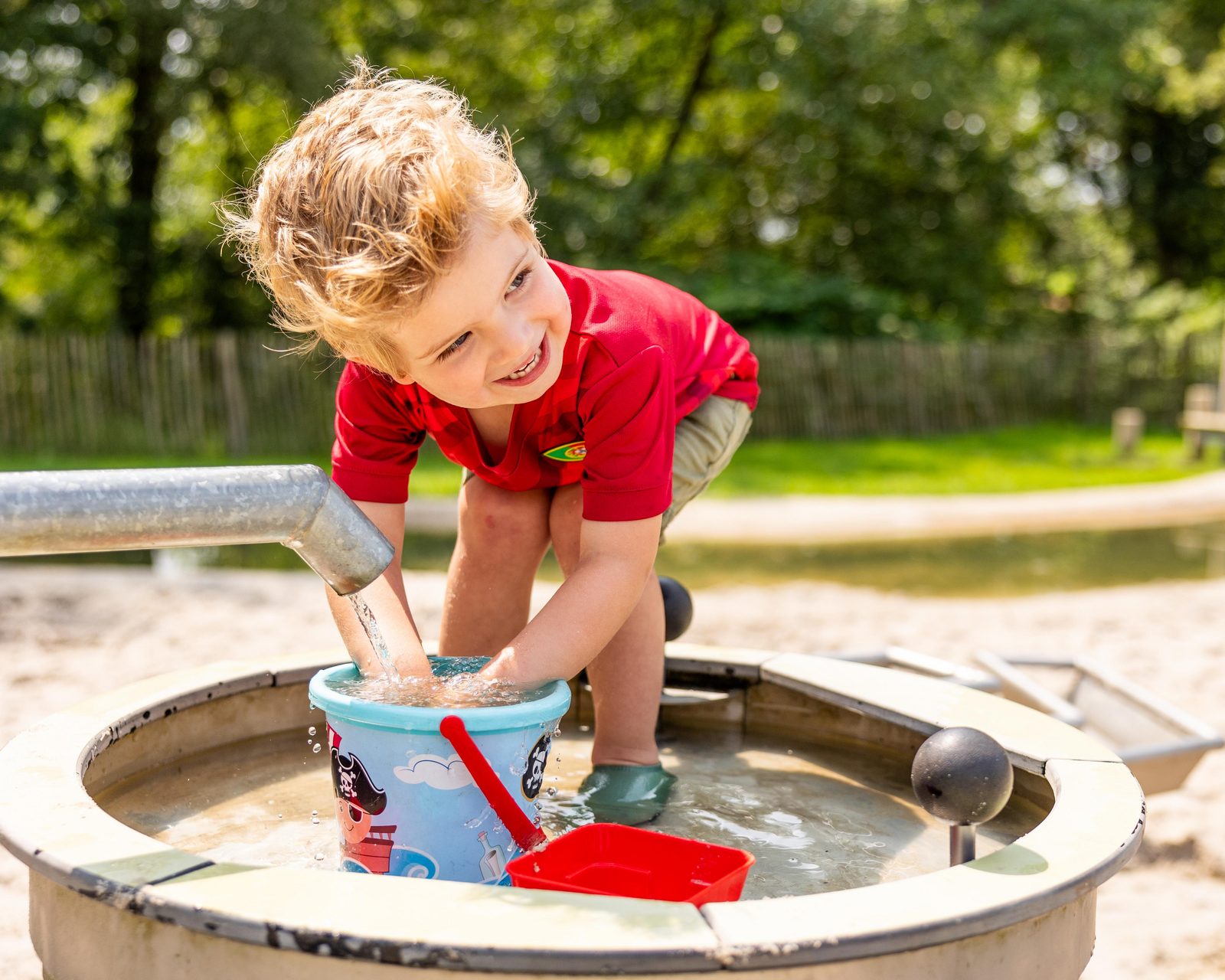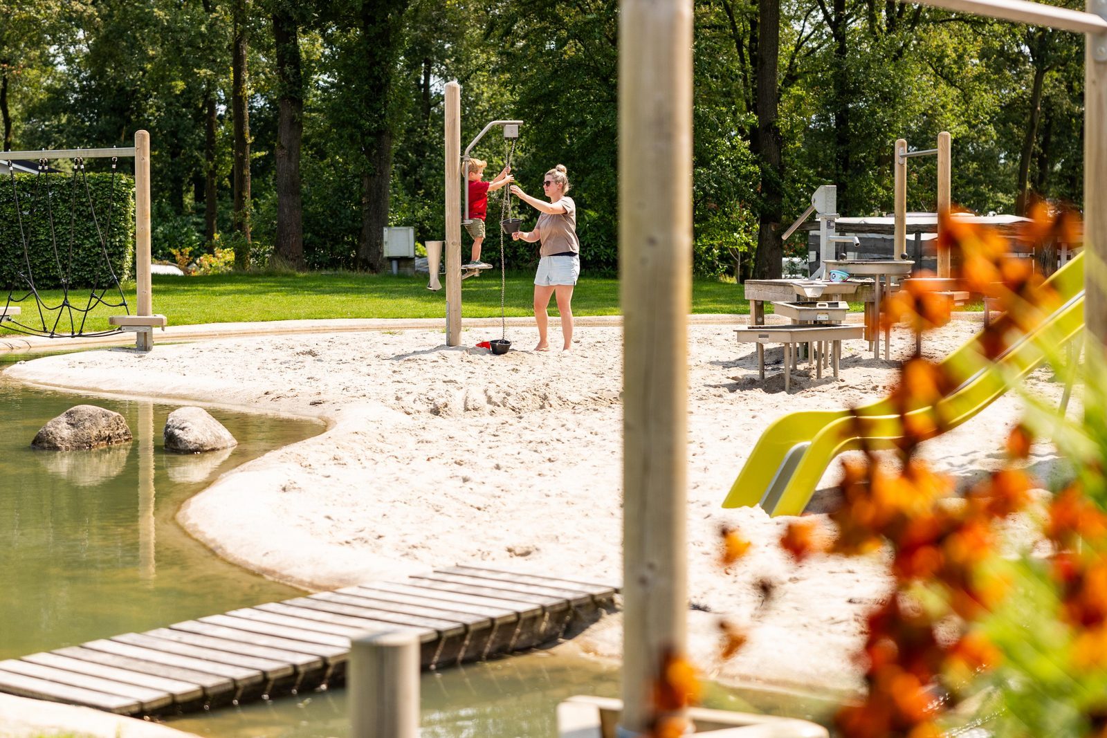 De plek waar kinderen eindeloos waterpret beleven terwijl ouders ontspannen toekijken. Midden op het park vind je een veilige en overzichtelijke speelomgeving.