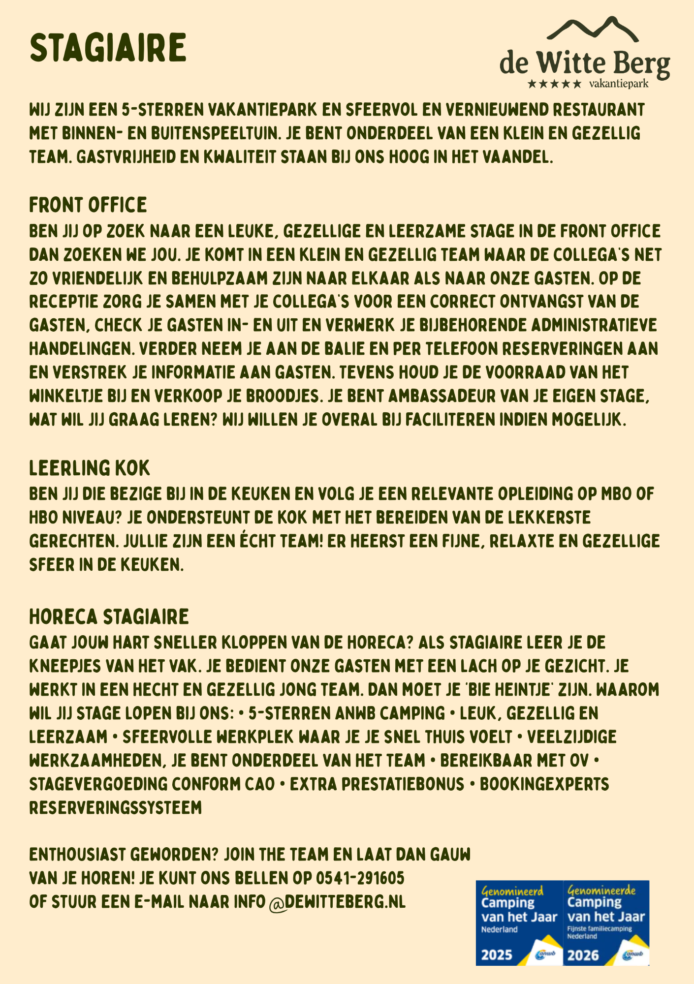 Vacatures bij De Witte Berg en Restaurant Bie Heintje